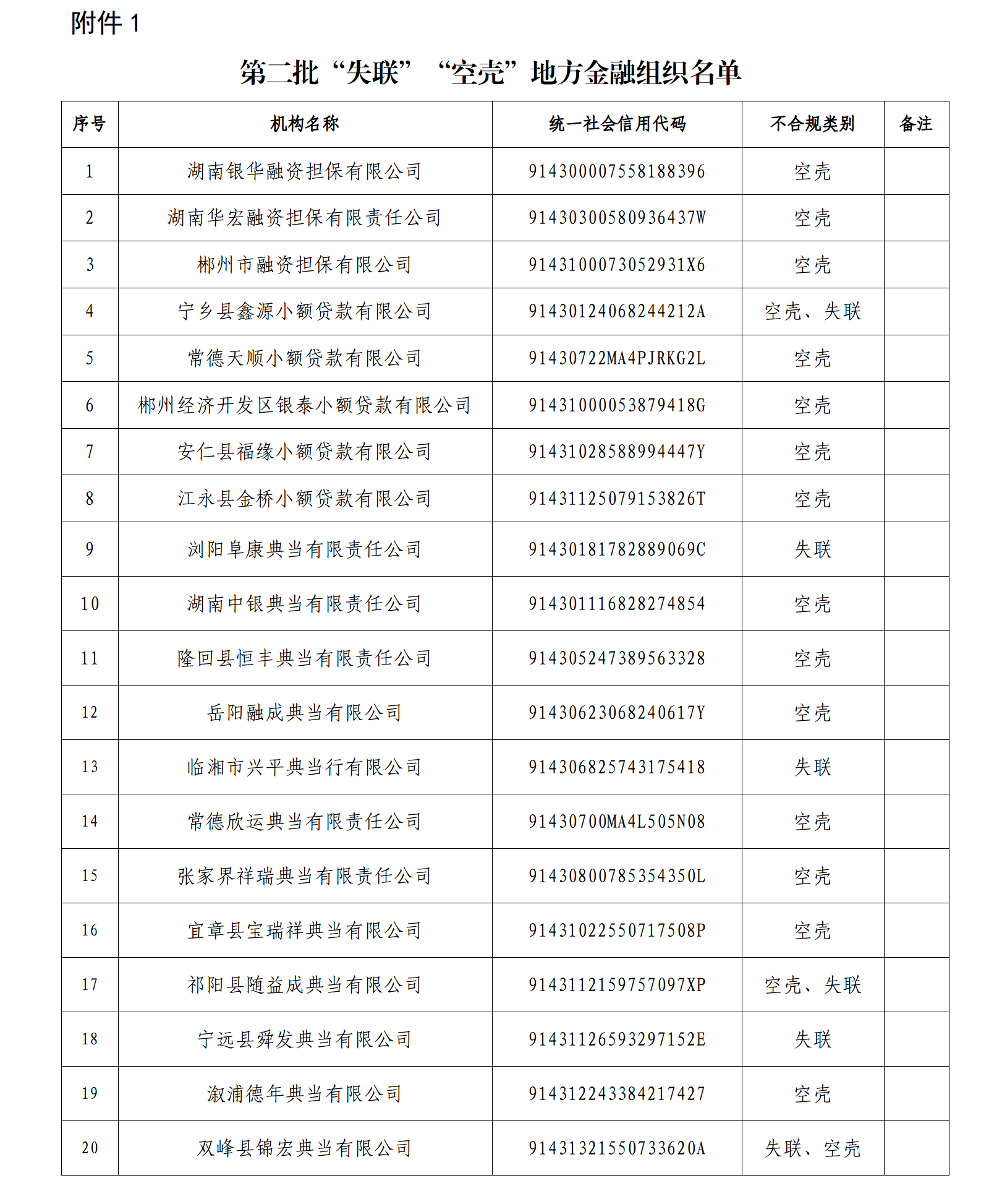附件:1.第二批“失聯(lián)”“空殼”地方金融組織名單